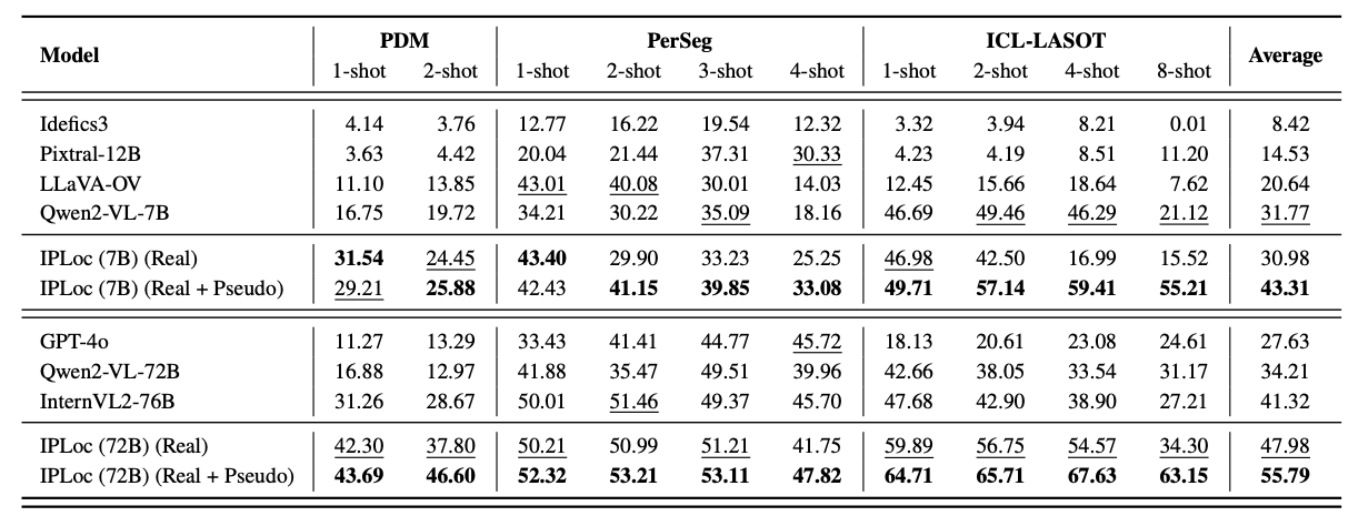 ์ผ๋ก๋ PDM, PerSeg, ๊ทธ๋ฆฌ๊ณ ICL-LASOT์ด ์์ต๋๋ค. ๊ฒฐ๊ณผ๋ฅผ ๋ณผ๊น์?